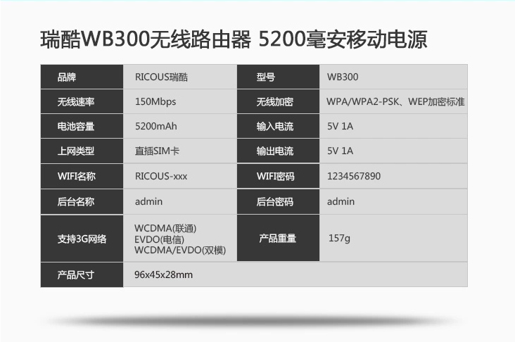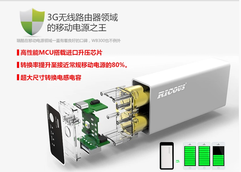 瑞酷 3g无线路由器 移动wifi 迷你电源 5200mAh 随身mifi